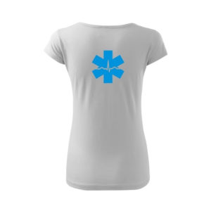 Dámske tričko s motívom EKG Záchranári.Tričko s veľmi krátkym rukávom, voľný guľatý priekrčník s úzkym lemom zo zhodného materiálu. Ramená spevnené všitým prúžkom. Tričko má dĺžku do hĺbky bokov. Silikónové zmäkčovadlo zaisťuje splývavosť a mäkkosť na dotyk. Saténová etiketa. Materiál 100% bavlna.– TERMOtransferová potlačOdporúčame prať a žehliť z rubovej strany.– motív svetlomodrej farby– hruď menšie logo + chrbát väčšie log